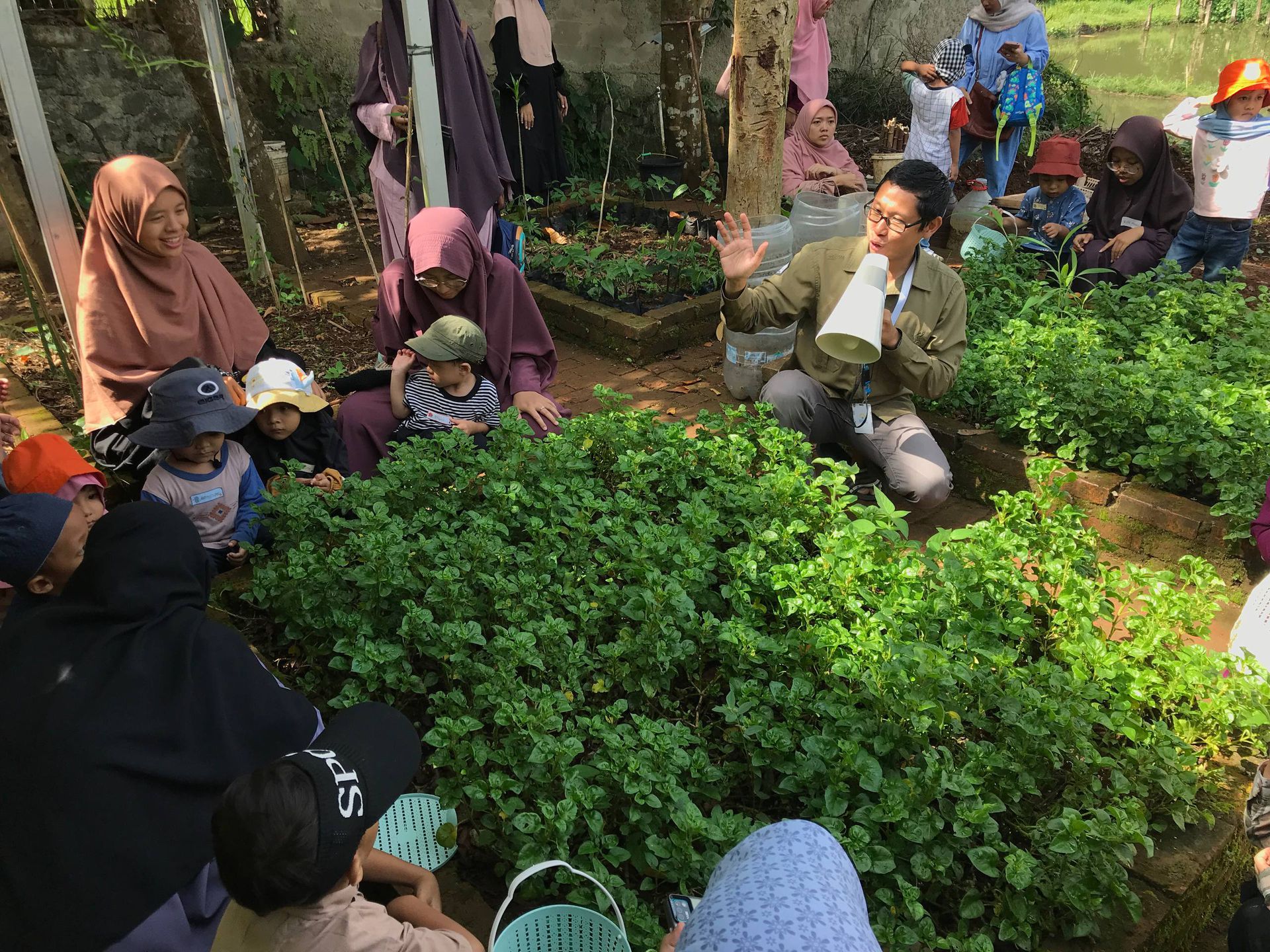 Petualangan berlanjut ke kegiatan yang paling dinanti, Berkebun! Anak-anak belajar menyiram tanaman, memetik sayuran, seperti; bayam Brazil, buncis, tomat, hingga cabe rawit. Kegiatan ini membuka mata mereka, bahwa makanan sehat berasal dari perjalanan yang panjang yang harus dirawat dengan penuh kesabaran. Tak sampai disitu, anak-anak juga diajak untuk mengenal dunia hewan, dengan memberi pakan ayam. Momen pengalaman ini menjadi baru, bagi banyak peserta. Beberapa tampak sangat antusias, ada juga yang awalnya ragu, namun akhirnya berani mencoba.