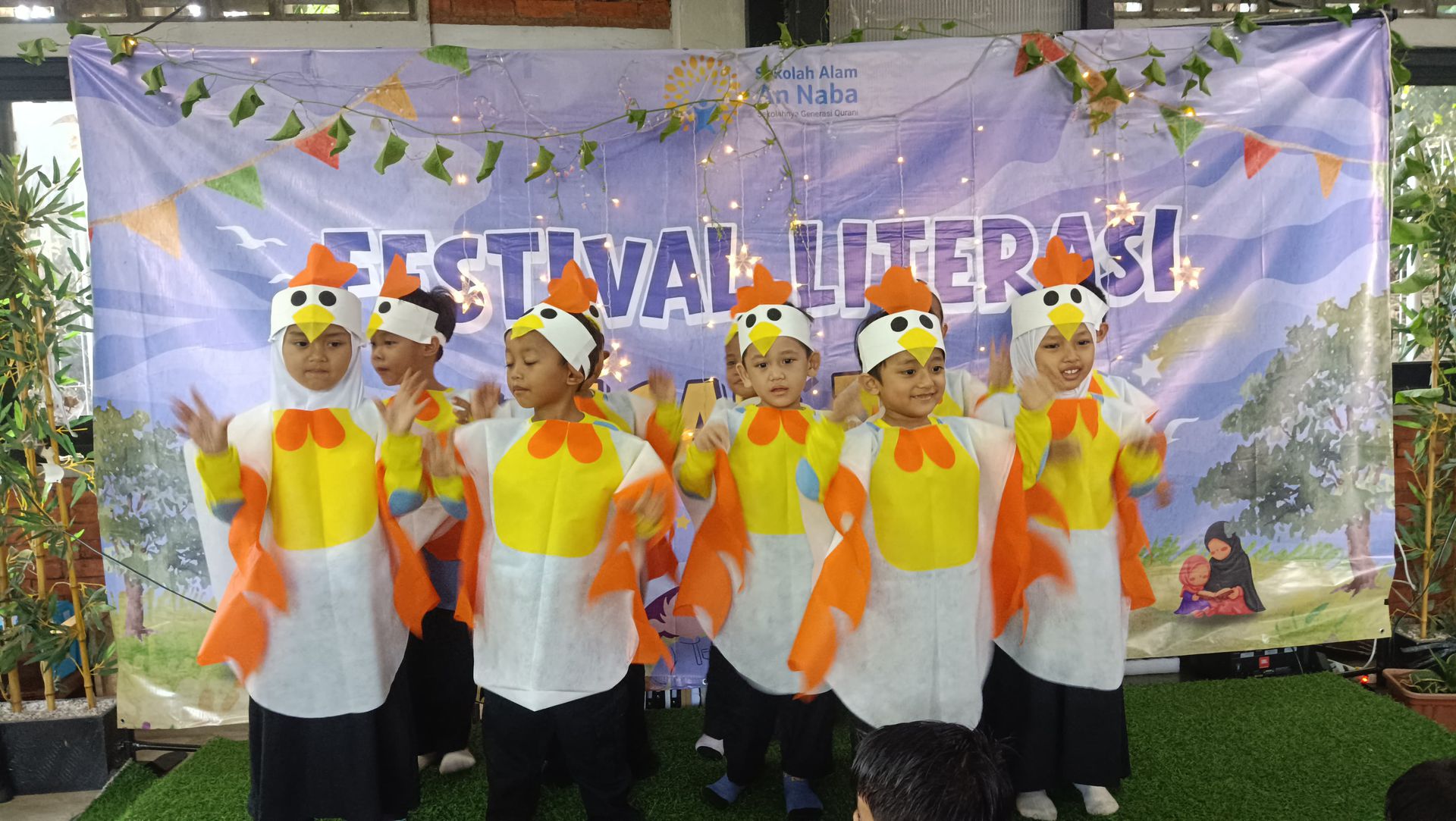 sekolah Alam An-Naba kembali menggelar festival literasi dan puncak tema pembelajaran tahunan. kegiatan ini berlangsung dengan sangat meriah dan mendapat antusiasme dari siswa, guru, dan ayah bunda yang hadir. sejak pagi hari, susana sekolah telah dipenuhi semangat, dan keceriaan anak-anak yang akan menampilkan persembahan mereka. Anak-anak tampil percaya diri membawakan nyanyian dan drama mereka, bertema lingkungan dan makhluk hidup. setiap penampilan tidak hanya menghibur, akan tetapi sarat pesan edukatif tentang kepedulian terhadap alam, kesehatan, dan keagungan ciptan Allah SWT.